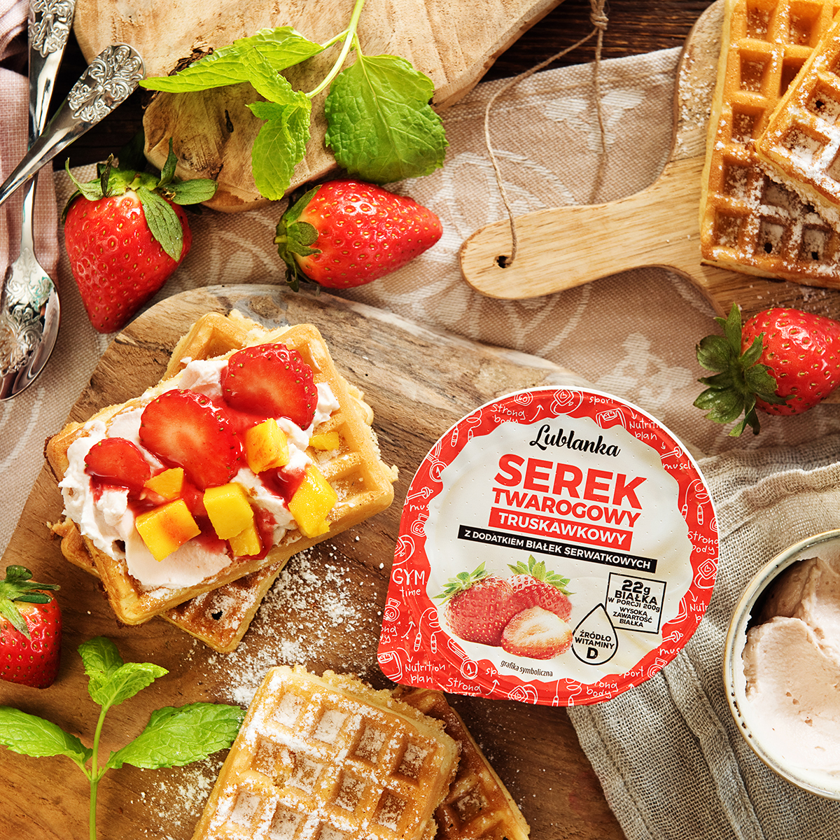 Owocowy serek, który naprawdę smakuje truskawkowo! Idealne połączenie półtłustego twarogu i prawdziwych truskawek daje pyszny, kremowy produkt, który sprawdzi się na śniadanie, podwieczorek czy zdrowy deser. Dzięki wysokiej zawartości białka i witaminie D wspiera dobrą formę i syci na długo — bez wyrzutów sumienia.