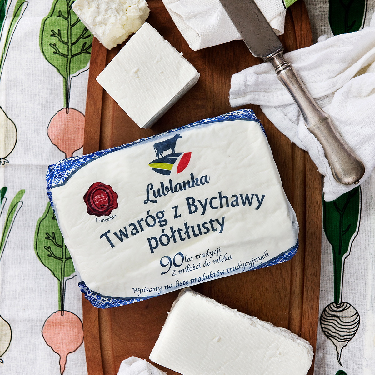 Twaróg półtłusty krajanka Lublanka to klasyka w wersji rodzinnej. Produkowany tradycyjnie z polskiego mleka i naturalnych kultur bakterii fermentacji mlekowej, bez zbędnych dodatków. Ma zwartą, ale miękką konsystencję i delikatnie śmietankowy smak, który doskonale sprawdza się zarówno na słono, jak i na słodko.